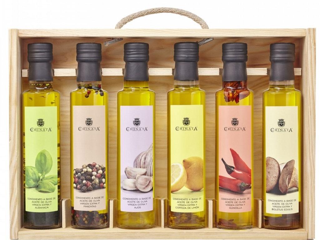 Estuche de madera con aceites virgen extra condimentados de 250 ml: