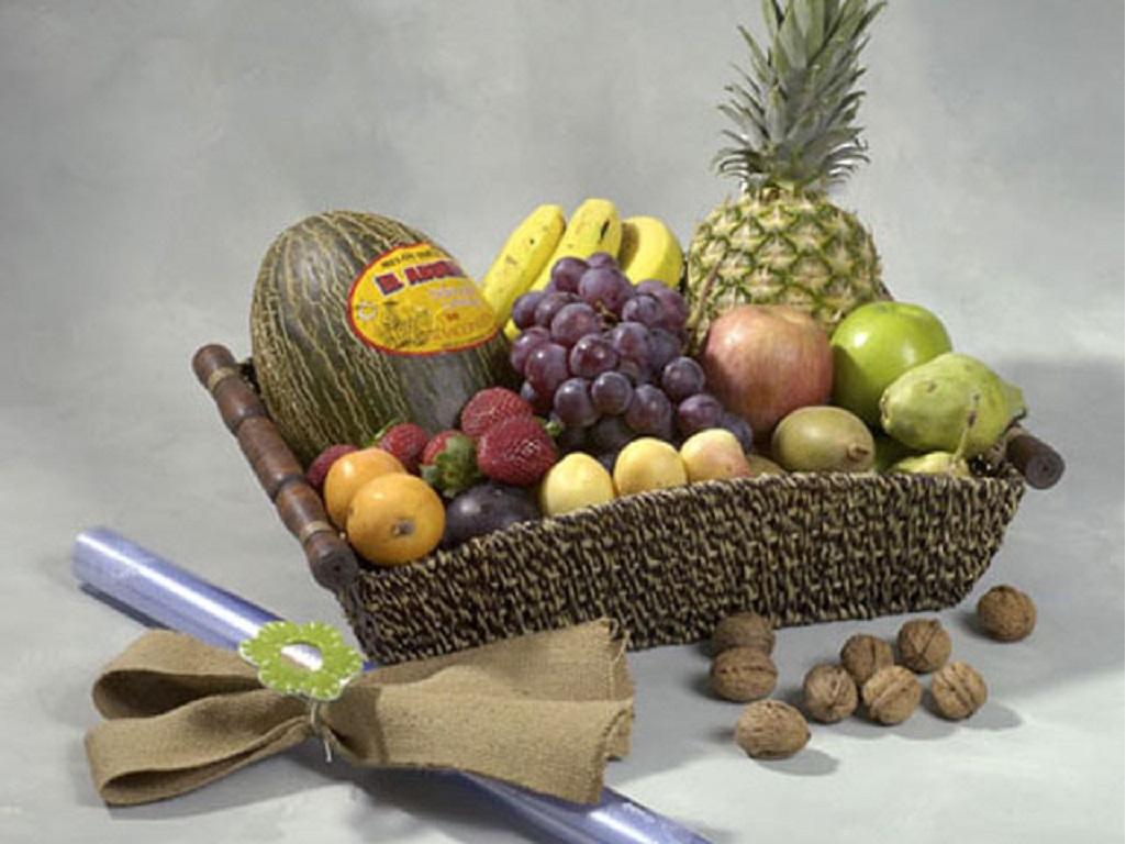 Cesta de mimbre artesanal con selección de fruta de temporada. Mas de 12 kilos de fruta de primerÃsima calidad. Fruta exclusiva seleccionada para crear un gran regalo. Envuelto con celofán y lazada. Exquisita variedad. Entrega gratis