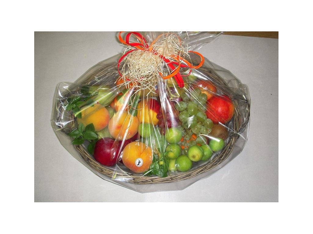 Cesta de rafia con selección de fruta de temporada. Variedad de fruta seleccionada de la mayor calidad. Envuelto con celofán y lazada. Entrega gratis donde nos indiques.