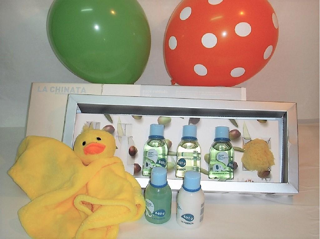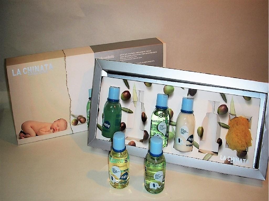 Estuche de productos para el bebé elaborados con aceite de oliva virgen extra ecológico y aguas termales, de agradable fragancia: