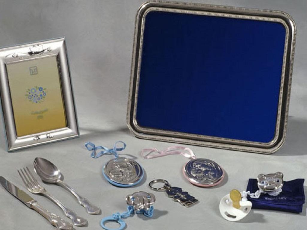 Pinza de chupete de plata acompañada de chupete. Un complemento ideal para nuestras canastillas de bebé. También hay otra serie de regalos de plata, consúltenos.