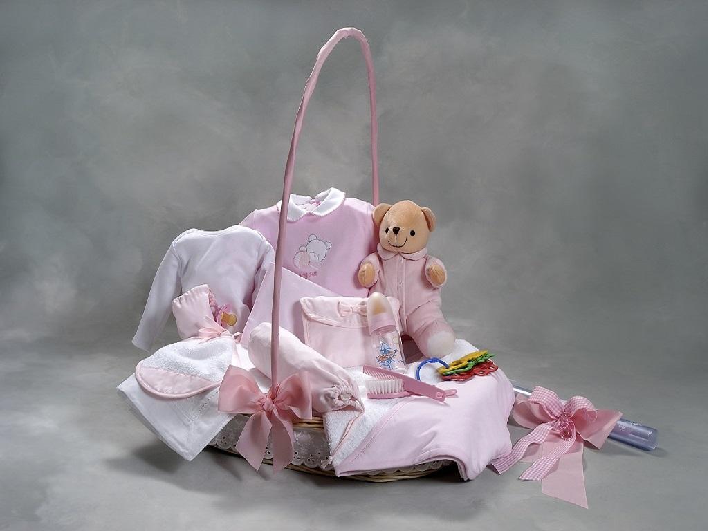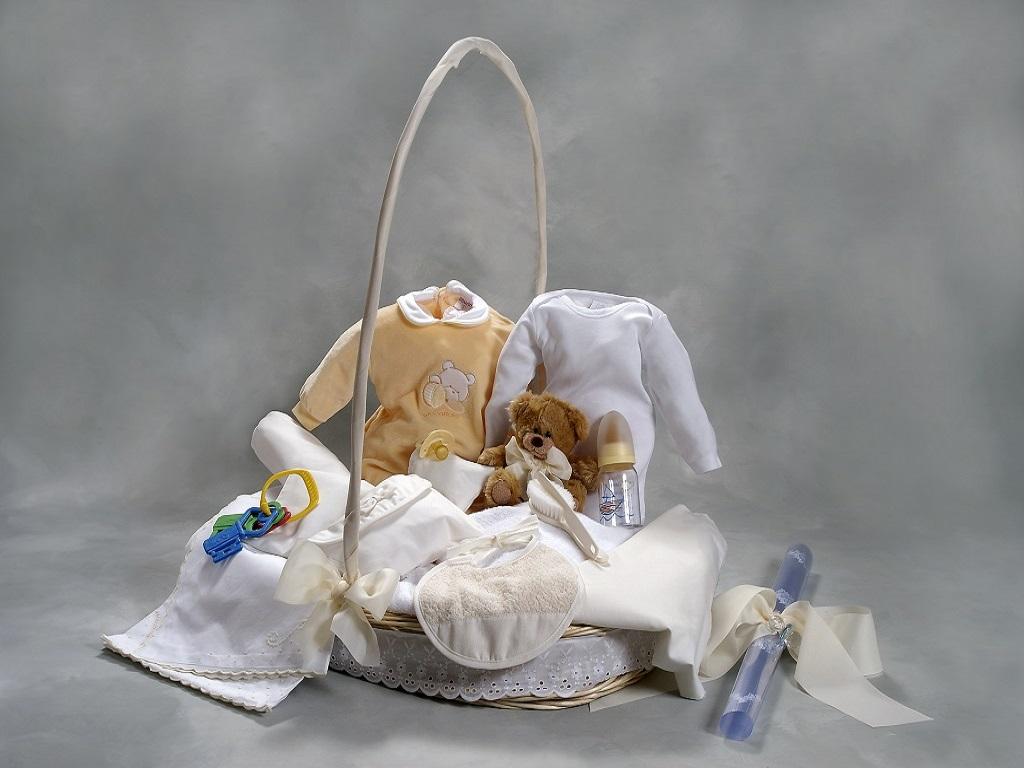 Regalo para bebe por su nacimiento. Cesta de mimbre artesanal