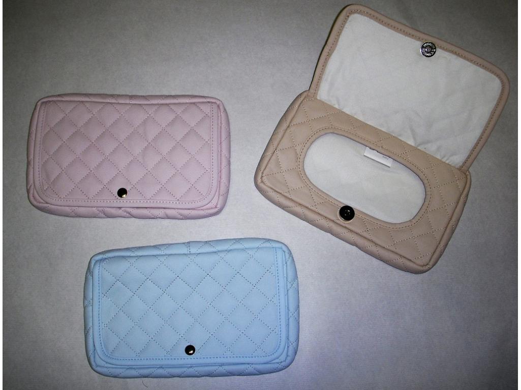 Porta toallitas forrado de polipiel, con cierre